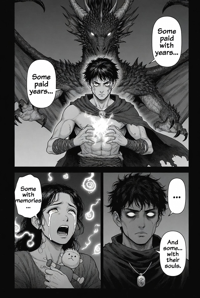 That panel above? Generated by ChatGPT using DALL-E. It created a full multi-panel manga page with speech bubbles, detailed character art, and a dark fantasy atmosphere -- all from a text prompt.